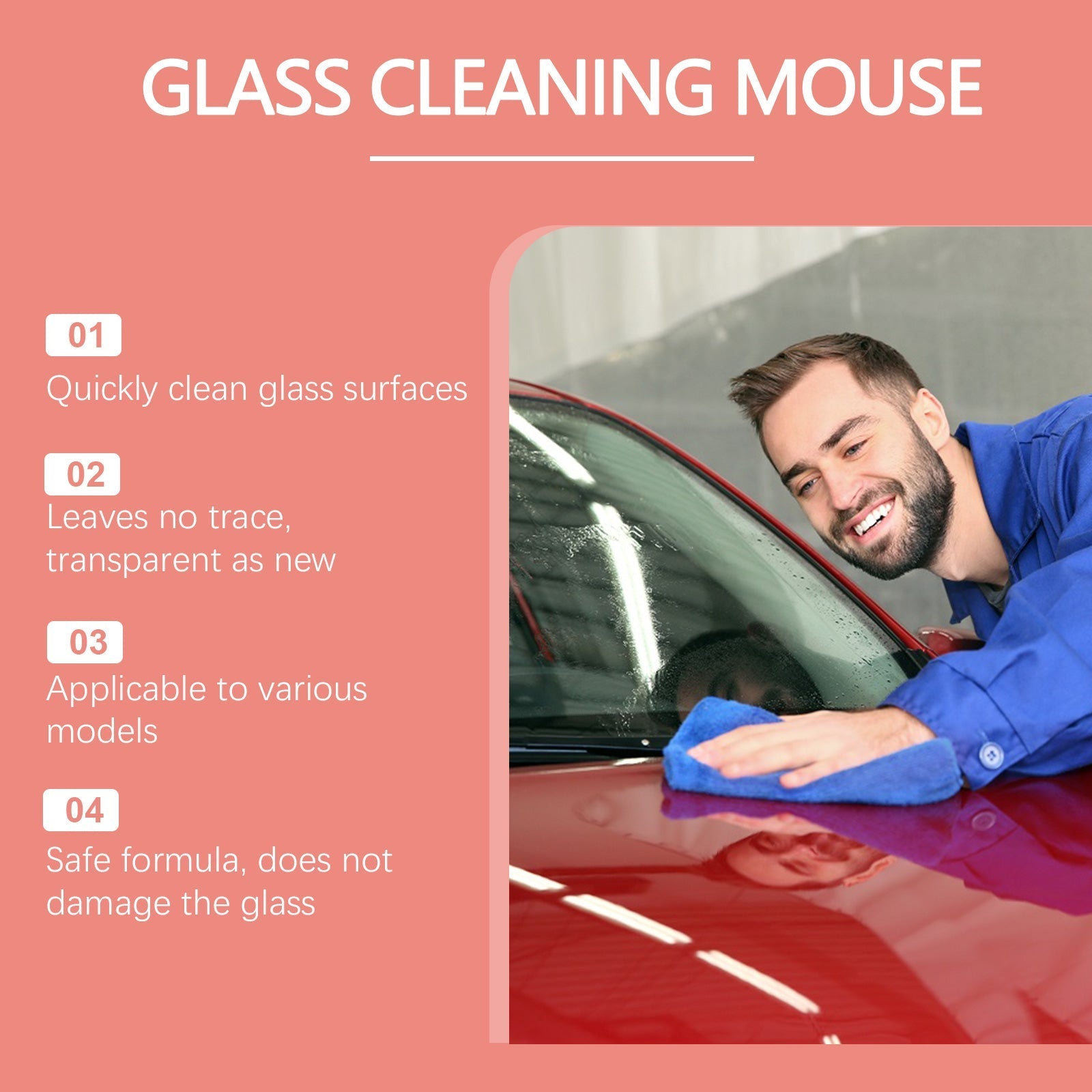 Rinse the glass surface to remove dust and debris. Open the product cap and apply evenly onto the glass. Allow it to dry naturally until a thin protective film forms.