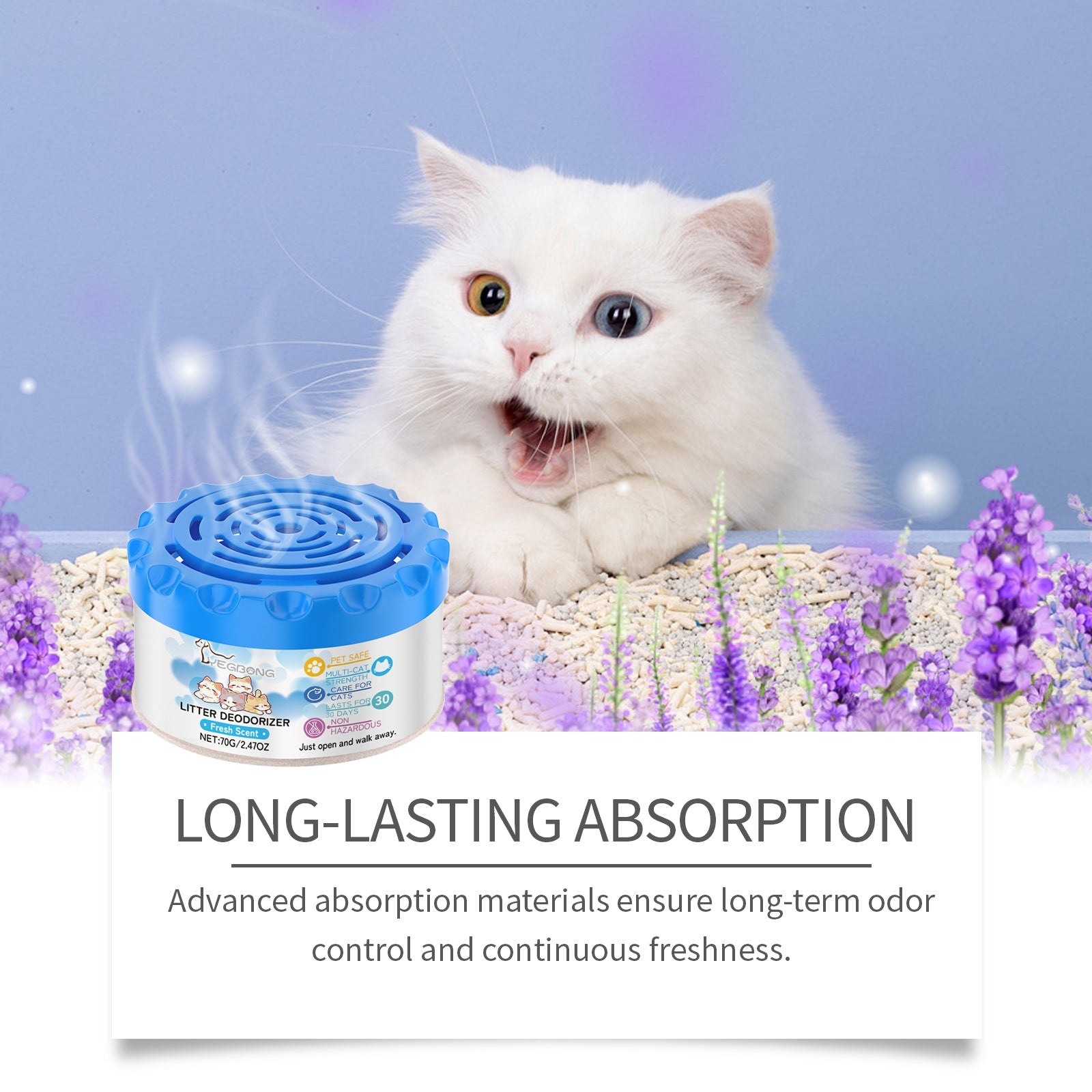 It features advanced absorbent materials to ensure long-lasting odor control and sustained freshness.